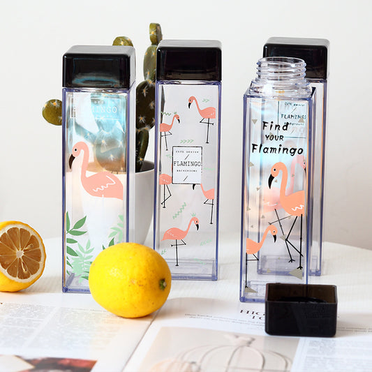 Hot Selling 500ML promotion gift square lid plastic water bottle, bamboo lid water bottle